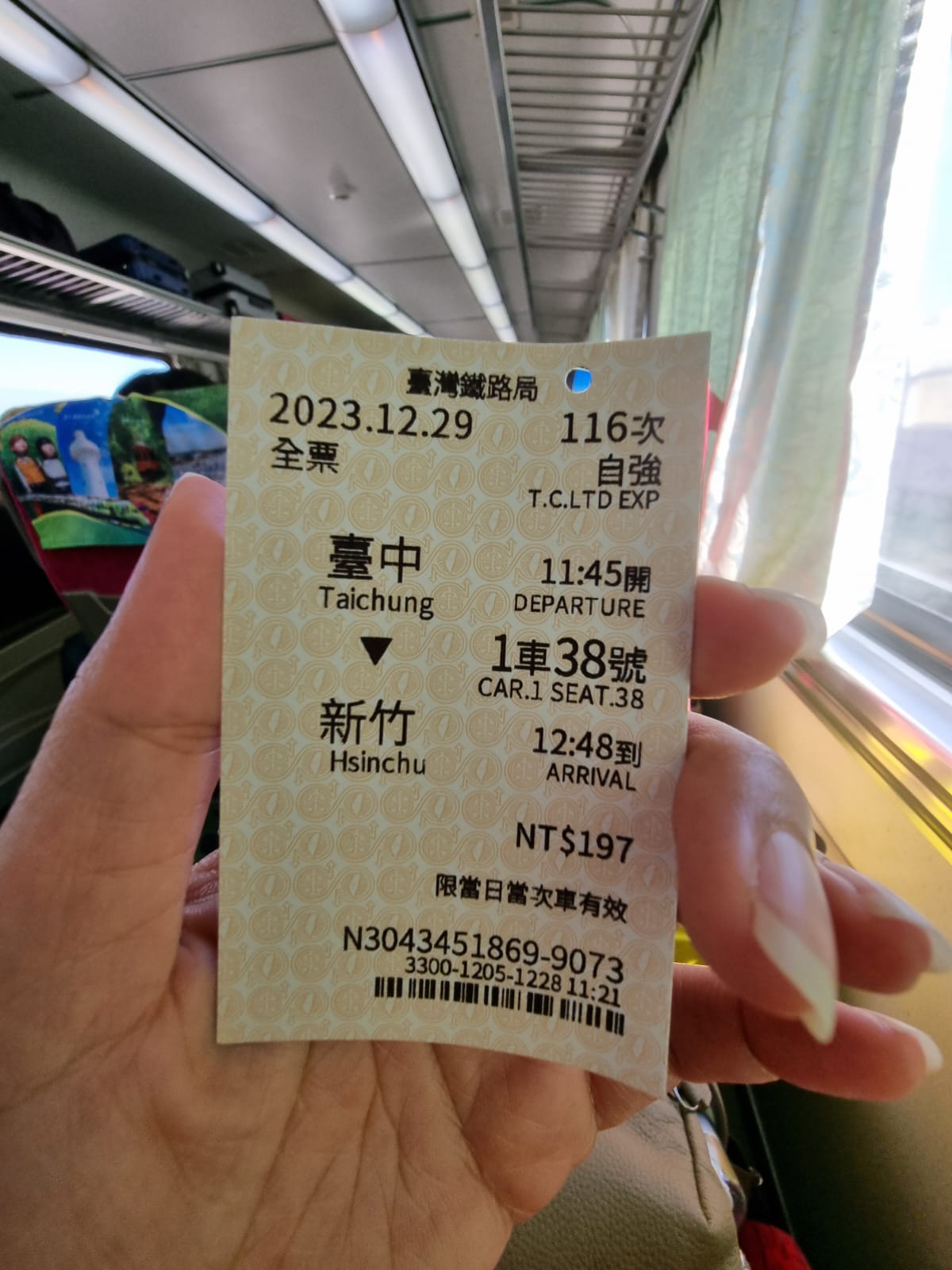 自强号进站了,就是我买的那趟火车啊。搭电梯下楼,在做escalator慢悠悠的上去,我都快急死了(因为没本事扛着行李跑啊)。我的列车是1号车厢,不管3-7-21上了最近的车厢(好像是7还是8号车厢),没1分钟列车准点开了,我只能缓慢地朝1号车厢方向移动。